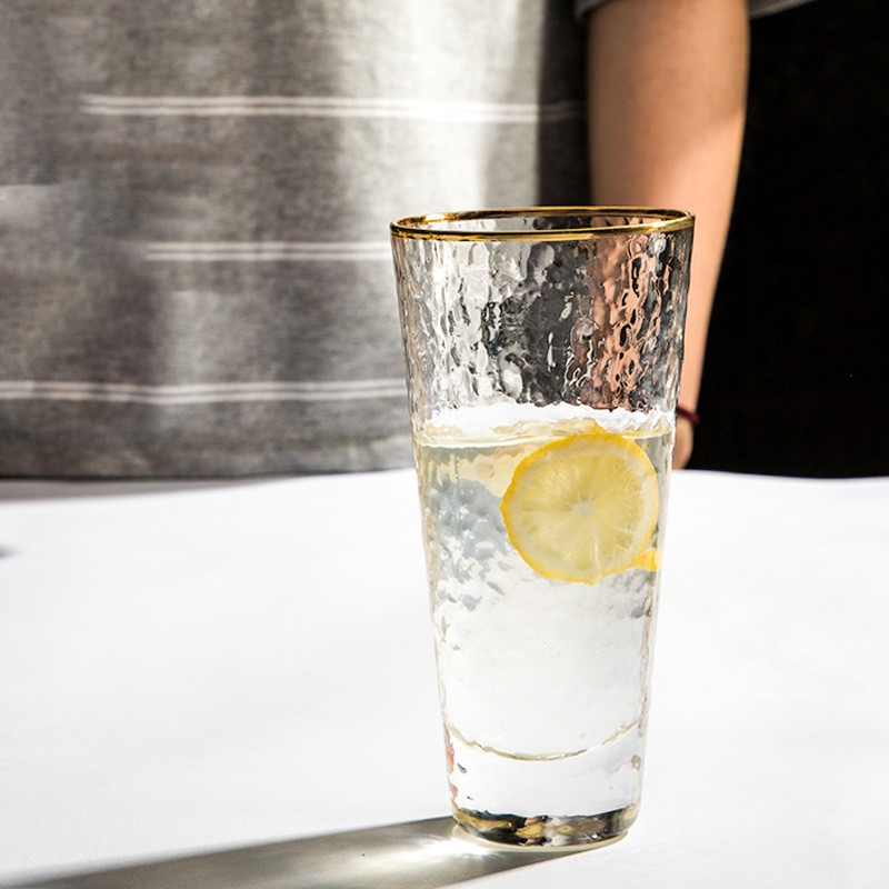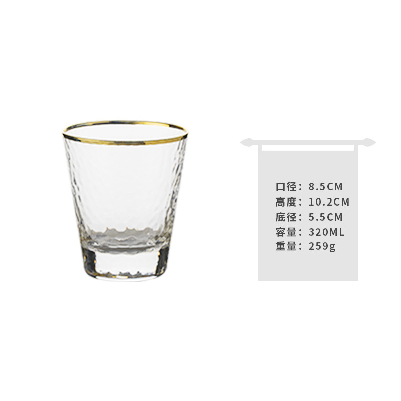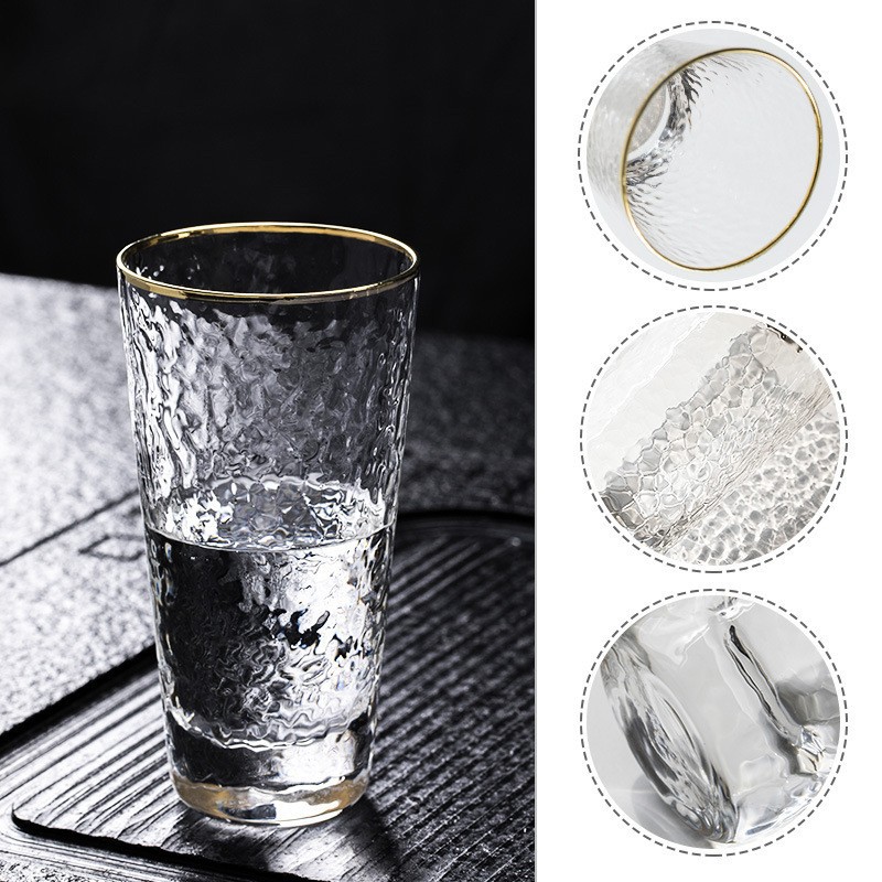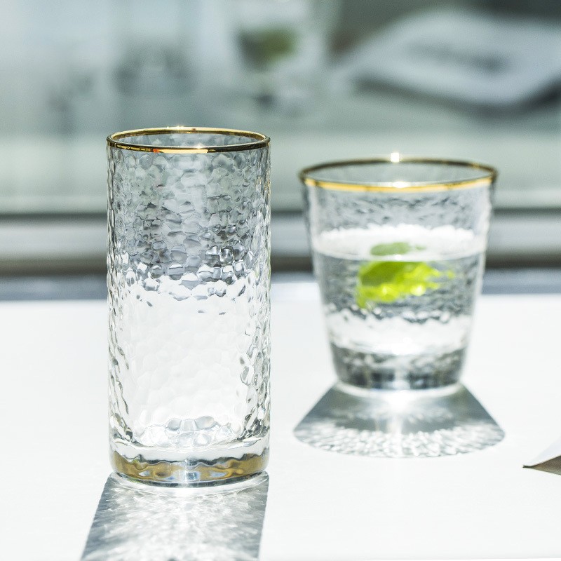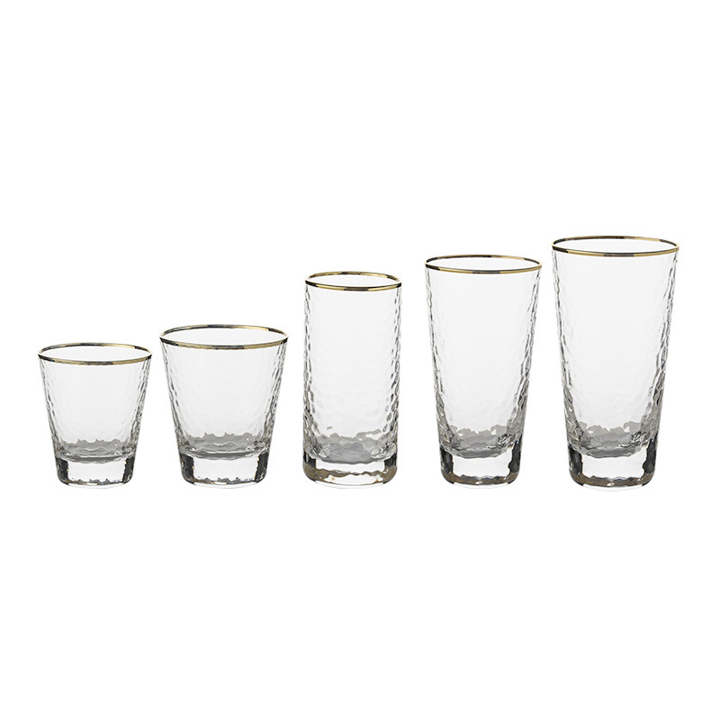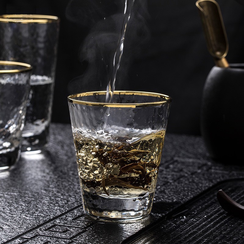 Názov produktu: Poháre z tepaného skla so zlatým lemom