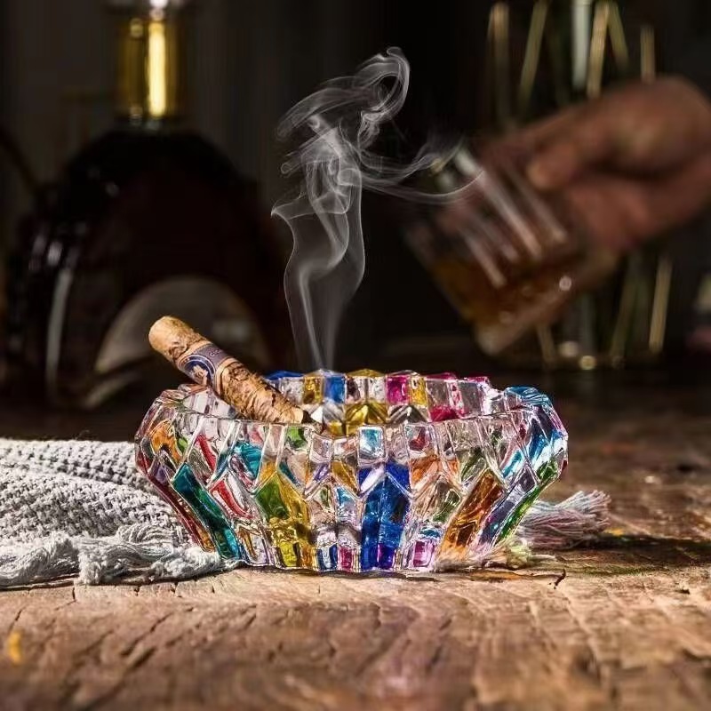 3. Vytvorenie kryštálového skla popolníka vyrobené z rezania a leštenia prostredníctvom viacerých procesov, každý detail zdôrazňuje osobnosť produktu a ukazuje ušľachtilú kvalitu.