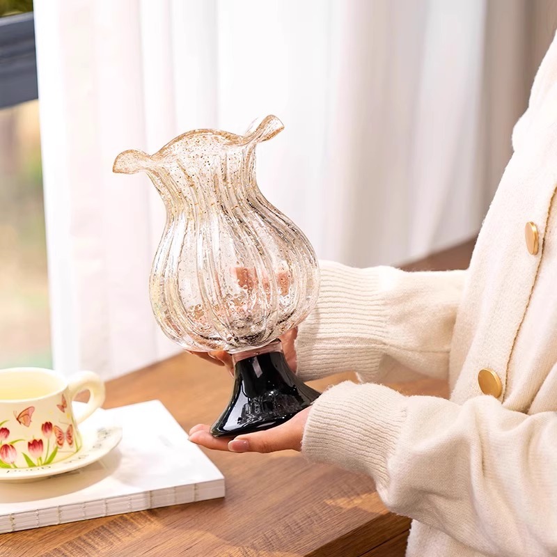 Názov produktu: Luxusná zlatá vintage vysoká sklenená váza