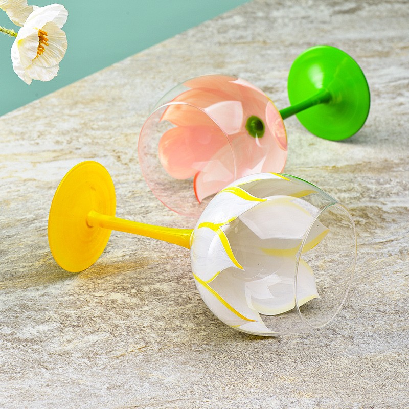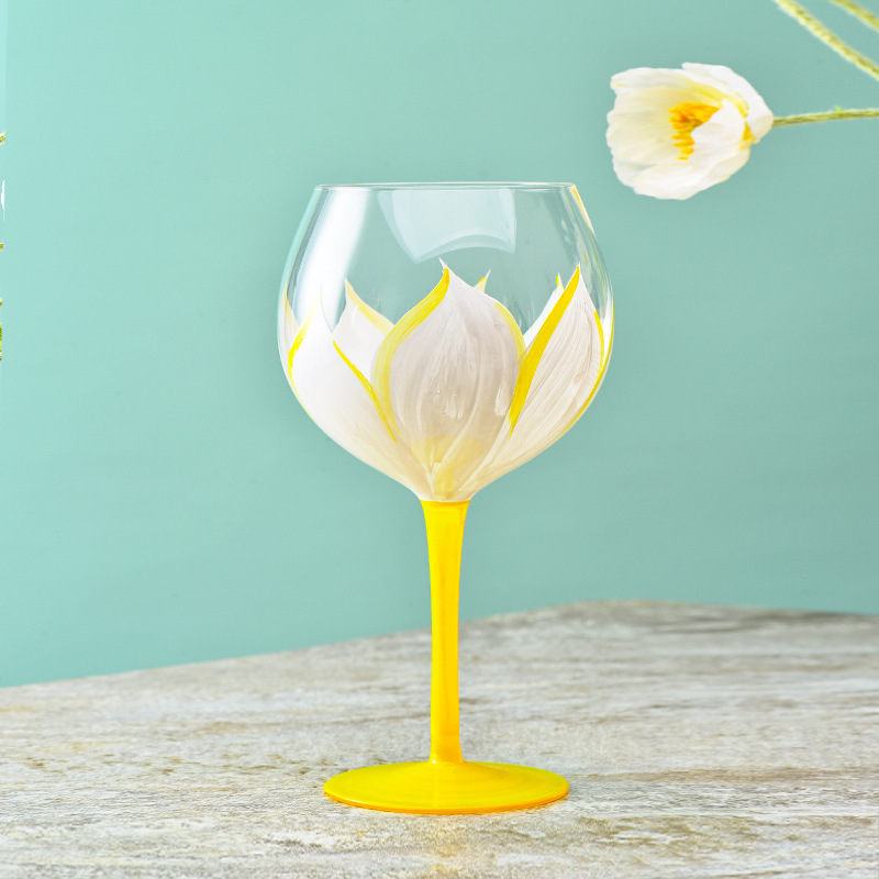 Telo pohára je maľované plnými kvetmi a rozkvitnuté púčiky a priehľadný pohár sú integrované do jedného, čo zvýrazňuje ladnú eleganciu celého kvetu. Maľba na čistom a priehľadnom sklenenom zárodku zmrazí krásnu scenériu v pohári, romantické stretnutie medzi stredovekom a inováciou