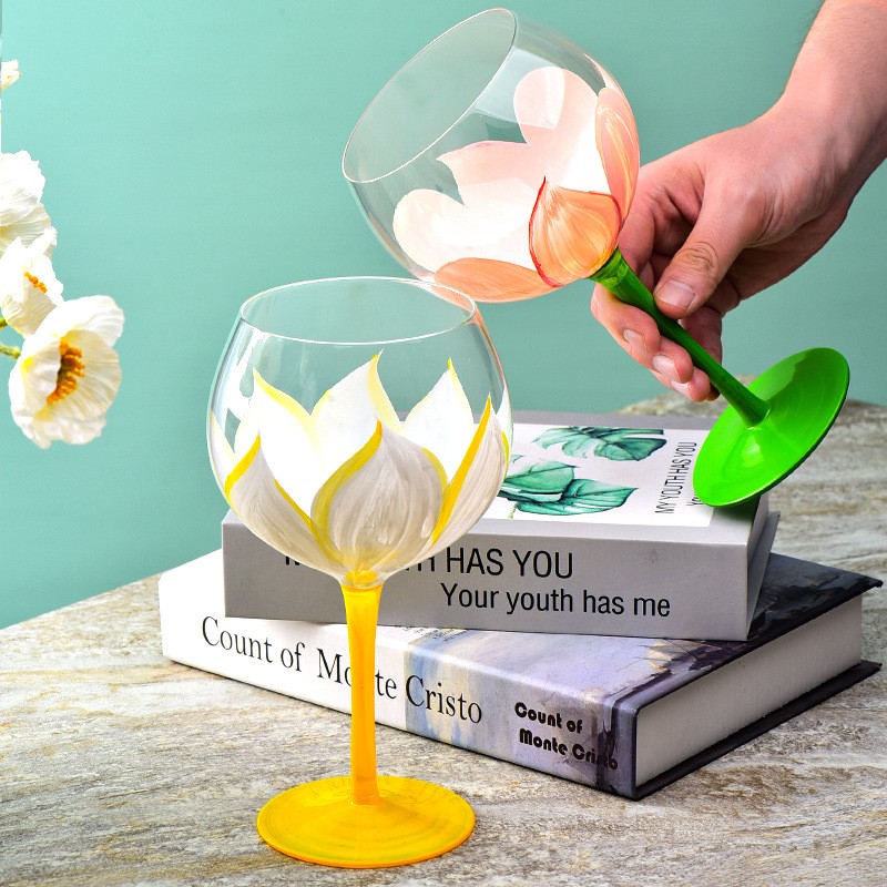 Maľované krištáľové sklo Poháre na víno sú starostlivo ručne maľované každým majstrom, ako keby pred vami zamrzli kvitnúce kvety. INTOWALK používa víno ako dohadzovač, aby si pomaly užíval život a umožnil vám relaxovať. Zaujímavé ručne maľované vzory na košíčkoch a módne prvky plynúce v prírode sú plné života