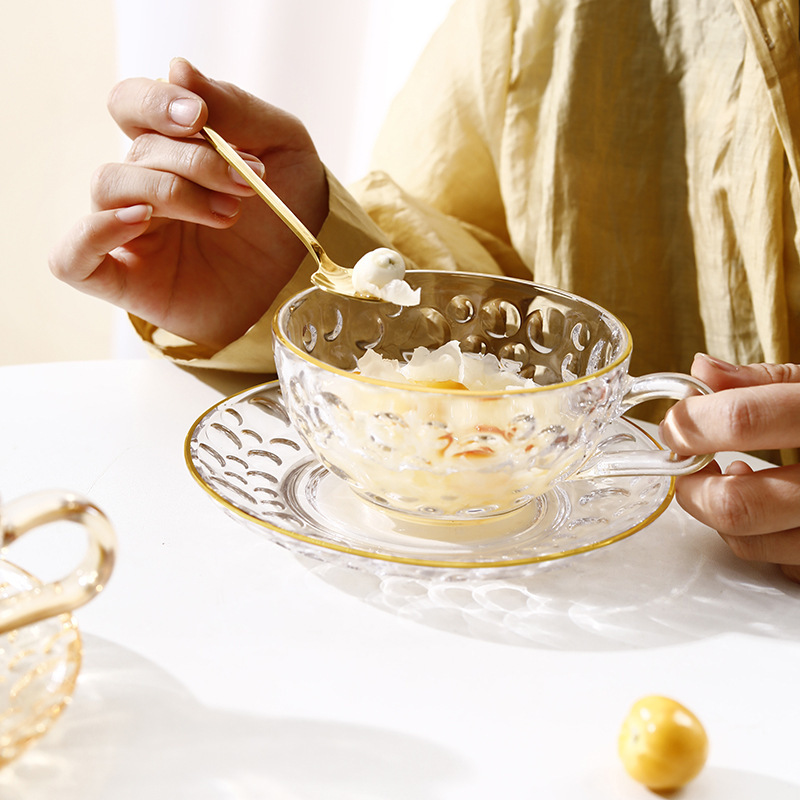 3. Transparentné pohárové telo s priehľadnou farbou jednoduché, ale elegantné, veľmi dizajnérsky zmysel, tečúce svetlo pod slnkom
